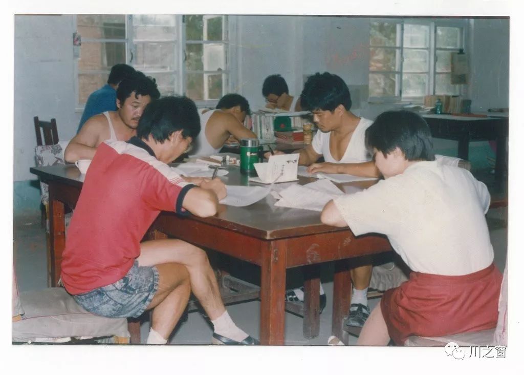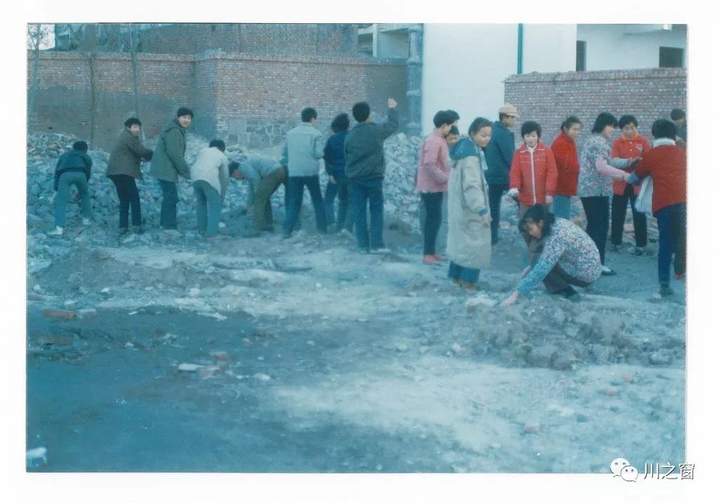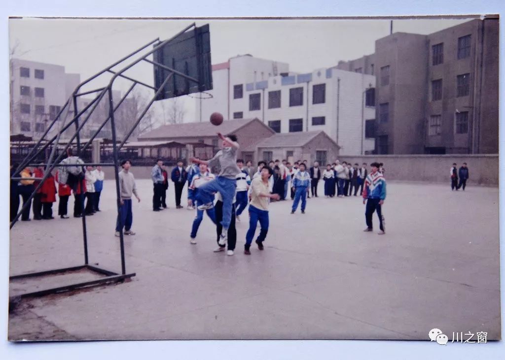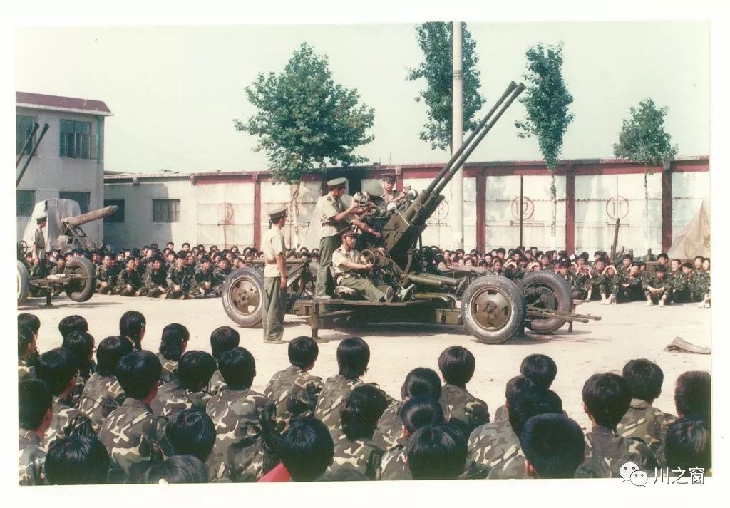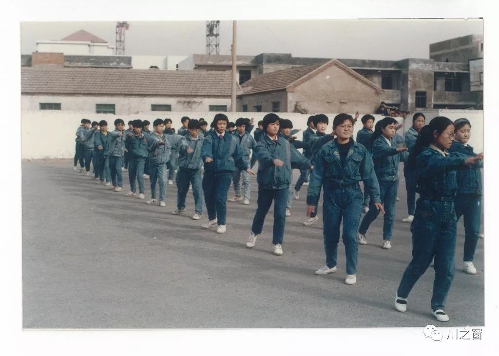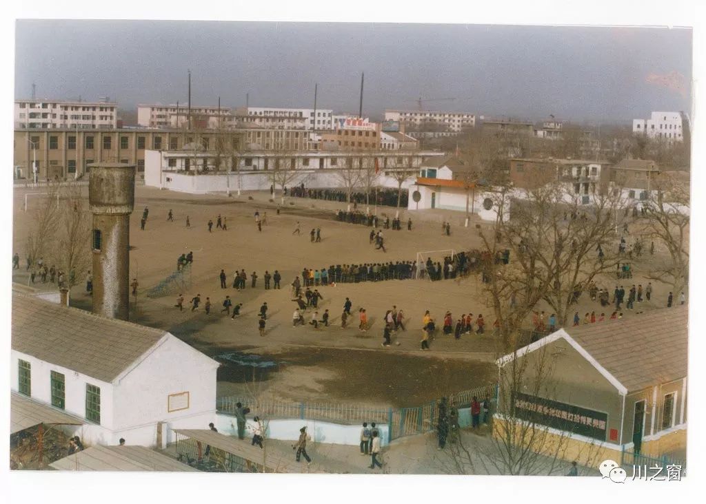 1990年3月4日下午,初1989级4班与防化连观看演出,互让座位,最后全部席地而坐