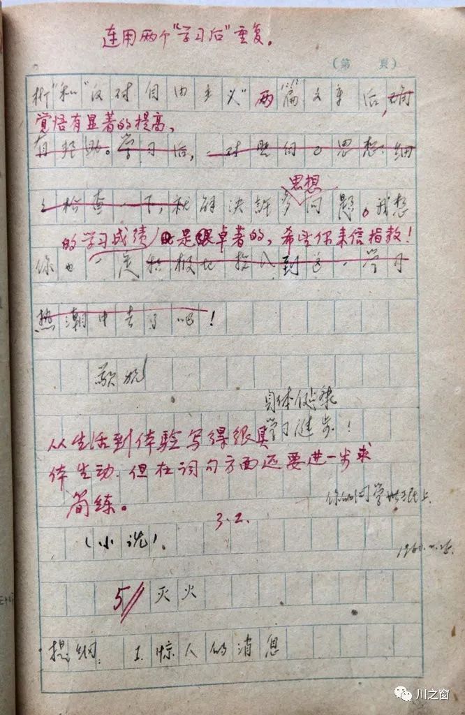 1960年语文教师单金顺批改的作文(王世珉校友捐赠)
