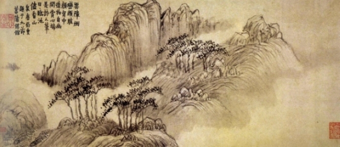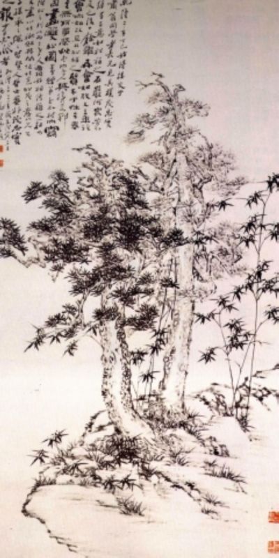 形成自己任意挥洒,水墨融成奇趣的独特风格,喜于画上作长文题跋,