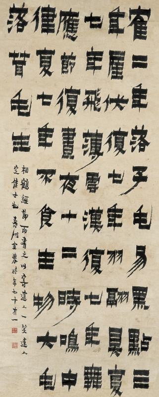 他独创一种隶书体,自谓“漆书”,另有意趣,又谓金农体或冬心体,