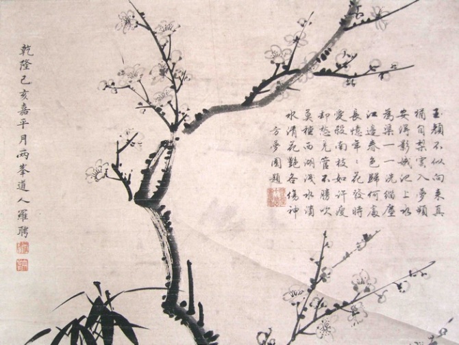 金农说:画梅之妙,在广陵得二友焉,汪巢林画繁枝,高西唐画疏枝。