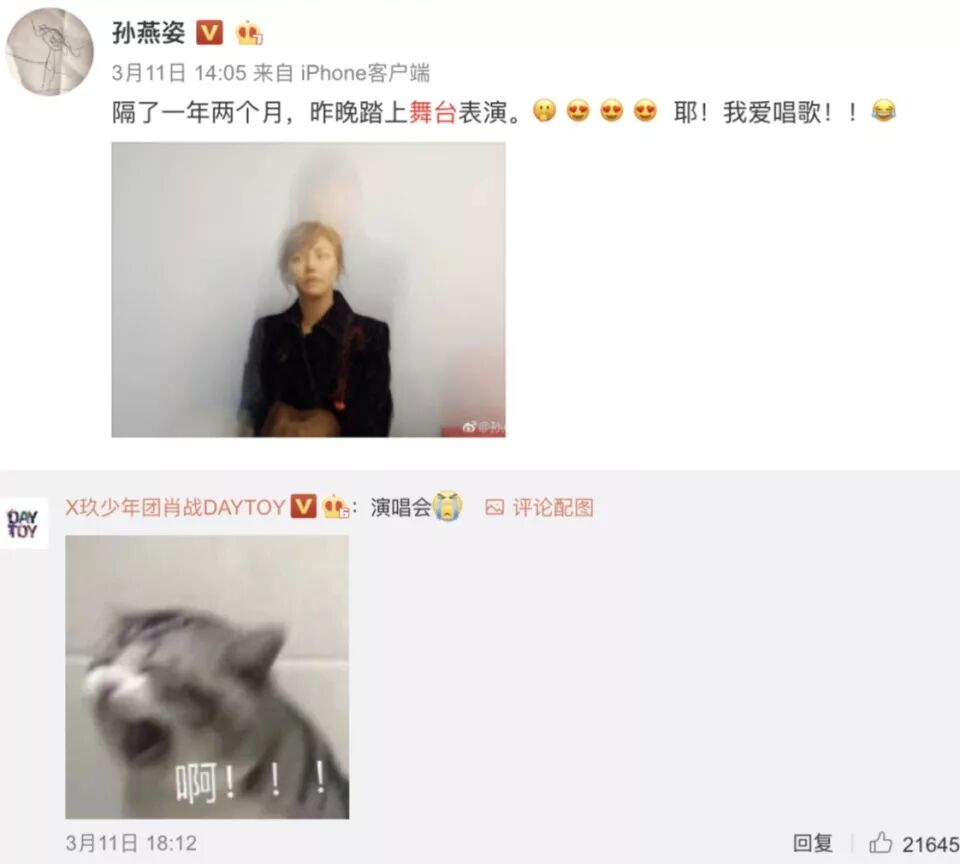 10月19日晚,肖战更博晒出他和孙燕姿的合影,发文:啊!!!!!!并打了一连串感叹号,这是每个追星小孩该有的表现吧!