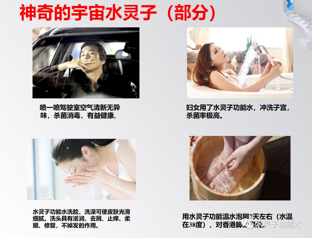 神奇震憾的宇宙水灵子仪!!!1,获得国家专利技术,是一种能瞬间永久改变酸性水,变成小分子水和净化空气的光灵子能量系统,由光灵子能量宇宙真空光频振动波通过压缩在一定的空间内,由一秒中几亿次宇宙真空光频振动波所产生的光灵子能量,作用于水改变水的质量!2,用上水灵子仪可除掉自来水中的氯气,病菌及其它污染源,普通自来水是100赫兹以上,巴马水是70到80赫兹,而水灵子是50到52赫兹,而人身体的细胞水的通道是2纳米,但水灵子的水是1.5纳米,所以每个水分子直接进入细胞,长期饮用可以清除体内垃圾,促进血液循环,增加肌体能量使人体内的细胞活性增强,促进人体的新陈代谢,激活细胞,修复细胞,再生细胞,提高免疫能力增强抵抗力!3,水灵子的水可以净化空气,消除油漆味,烟味,厨房油烟味,厕所异味等,可使室内空气清新,增加了负氧离子的含量,解决室内车内空气污染,有提神醒脑,有利于身体健康!4,用水灵子的水洗脸,洗头,洗澡,刷牙,洗碗,洗衣服无需用洗面奶,洗发水,沐浴露,牙膏,洗洁精,洗衣液,省钱,省时间,无化学成份污染,更好更自然让皮肤美白光滑细腻,保湿滋润,除皱,去屑止痒,柔顺,白发转黑发,稀发变浓发,美白牙齿,预防牙周炎,让衣服更鲜亮等意想不到的效果!5,喝水灵子的水不会肚子胀,因为它水分子比较小直接被细胞吸收。所以水灵子水不需要人体酶转换,直接3秒钟进入细胞,16秒净化到全身血液,燃烧体内脂肪,稀释血稠度,对高血压,高血脂,糖尿病,肾病,肠胃病呼吸道等八大系统的问题有明显的作用。6,用水灵子的水可以把大 米,瓜果蔬菜,肉类等食材上的激素,毒素,重金属及农药化肥残留清洗分解掉,泡洗大肠,大蒜,洋葱等能去除异味涩味腥味等。使米饭谷香,蔬菜清脆,肉质鲜美,保鲜时间长,打造绿色餐桌!7,水灵子水可以消炎杀菌,止血止痒,美容明目,清血通便,解决身体内一切堵的问题,因此对刀伤,烫伤,眼疾,各类炎症(感冒,鼻炎,脚气,妇科等)等有很好的帮助!8,用水灵子水泡澡可以通经络缓解身体各类疼痛,对四高人群,肥胖,关节炎症,痛风,牛皮癣,肿瘤等有很好调理作用!因为水灵子的水是小分子活性的水,可以改变|酸性体质,人体有70%以上是水,血液里有83%的水,血液在人体内负责运送氧气,营养到各个细胞组织器官系统,同时也分解清除体内垃圾毒素,对气血不足,体内湿寒,减轻肝脏排毒等要多泡澡多喝水灵子的活性。