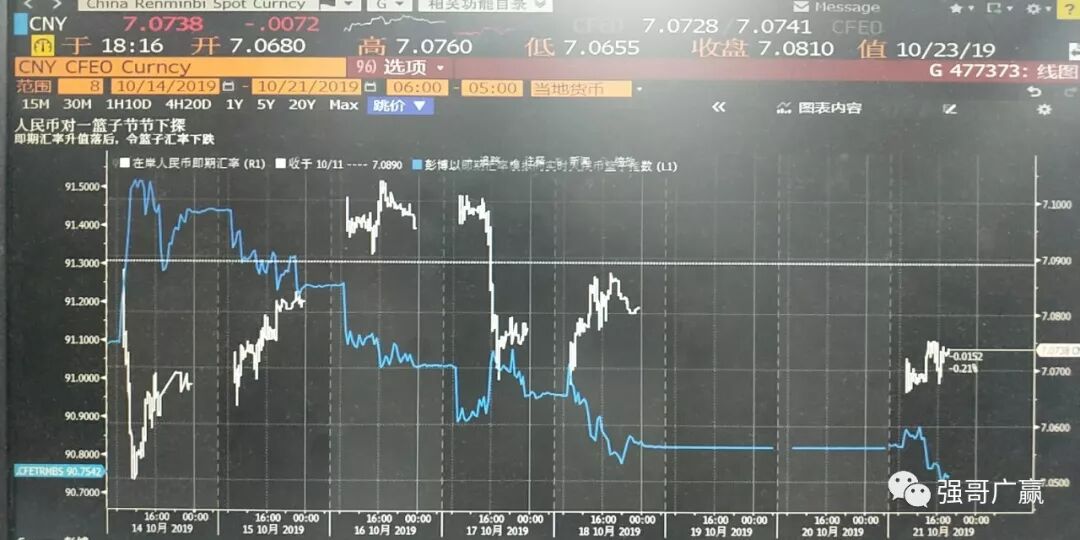 上周受消息面影响美元兑人民币大幅波动。周初,受中美贸易谈判阶段性利好的刺激,人民币快速上扬。随后市场对中美贸易谈判后续进展仍有担忧,人民币汇率随即下调。下半周,中国商务部释放中美谈判进展积极讯息,提振市场情绪,人民币小幅上涨。上周集中公布了一系列中国重要经济数据,中美贸易摩擦影响开始逐步显现,三季度的经济结果不尽如人意,主要表现在政策实施过程中的矛盾:当前CPI很高,9月同比达到3.0%,但主要是猪肉等食品所致,而扣除食品之后的核心通胀并不高(9月只有1.5%左右)。考虑到PPI已经为负(9月同比为-1.2%),当前实际的货币政策其实是偏紧。9月货币和社融数据略超预期,货币政策已经开始偏向宽松,控制节奏很重要,大水漫灌一去不复返,实际效果显现需要时间,有待进一步观察。如果政策组合保持不变,PPI将进一步下行,经济增速也将进一步下行。目前的困境是,一方面经济下行风险加大,但是另一方面通胀风险因为猪肉和食品价格而居高不下。“取”或“舍”都很难。而在政策空间愈发有限的情况下,货币政策将不得不趋于宽松,好在中美初步达成第一阶段协议,可谓是皆大欢喜的一个结果。三季度中国GDP当季同比超预期下降至6%,超预期的不在于下行的幅度,而在于GDP数据轻松的地触及了6%这个心理关口,没有引发市场轩然大波。像人民币汇率“破7”、CPI“破3”一样,GDP“触6”的发生,市场已有预期,这就是买预期卖事实。预计2019年全年GDP仍能保持在6以上。