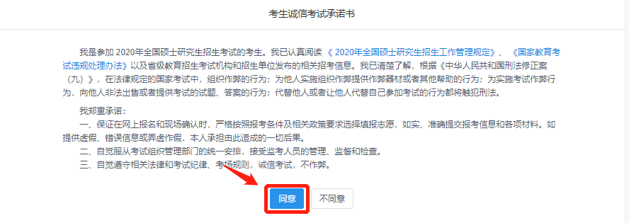 考生诚信承诺书,点击“同意”