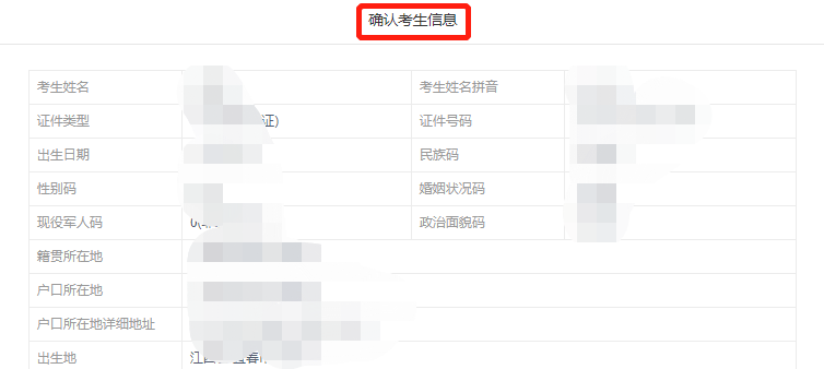 再次确认考生信息,核对无误后点击“确认”