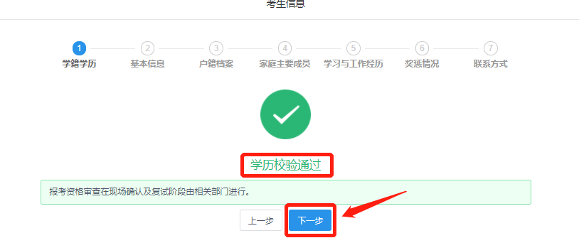 学历校验通过后点击“下一步”