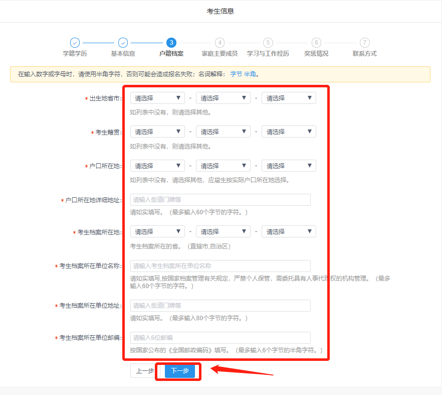 填写考生基本信息,点击“下一步”