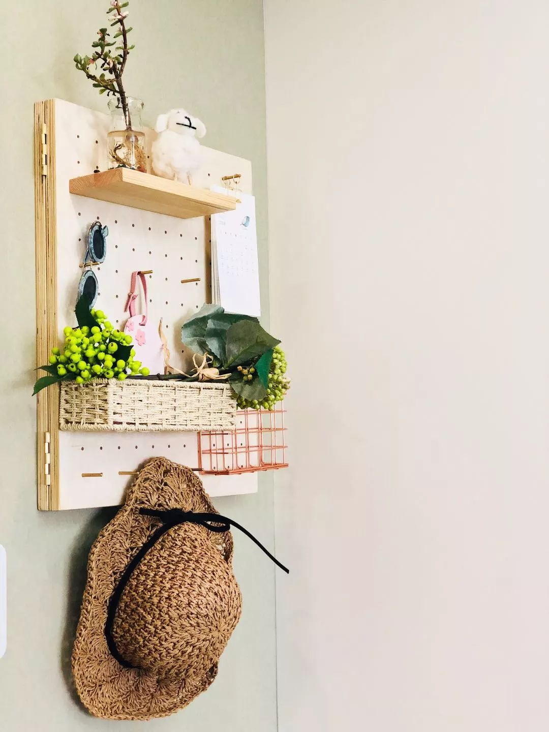 洞洞板不仅收纳能力数一数二,遮丑功力也异常深厚。用它遮挡自家的电表箱,遮丑+收纳+展示,算是把一小块洞洞板的作用发挥到极致了。