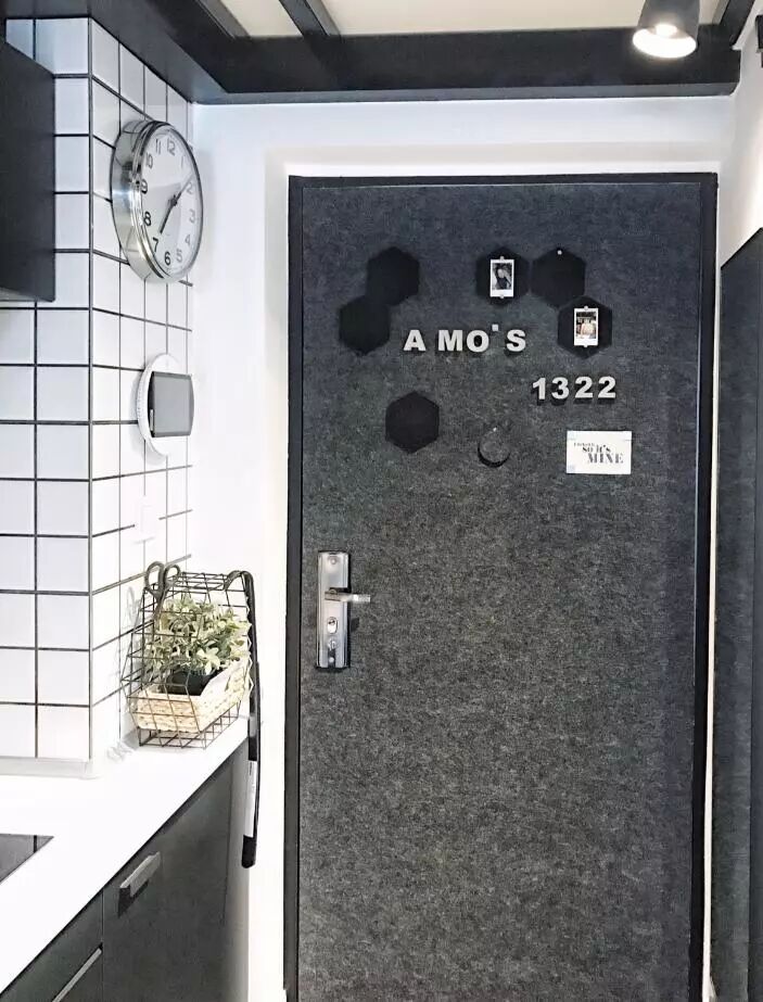 羊毛毡记得直接买带背胶的款式,简单粗暴撕开就是贴~贴的时候要注意提前挖空门锁和猫眼的位置。