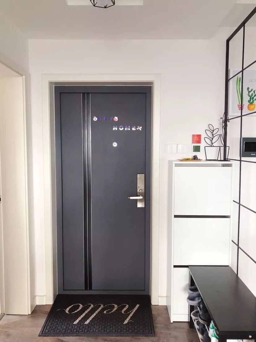 屋主@ilovevillevalo她用灰色墙纸改造入户门,再用亚克力字母贴做了些小DIY装饰~
