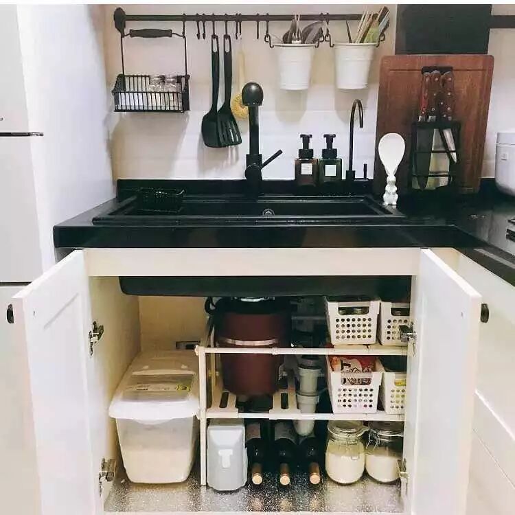 行,就是有点浪费,不如利用下伸缩置物架让它扛起一点收纳重任。