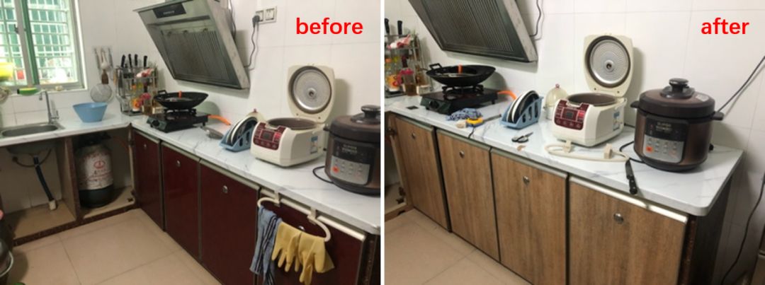 不过这些贴纸都不建议在新柜子、新地板上使用,它们是预算有限情况下的权宜之计,有钱还是换新吧!