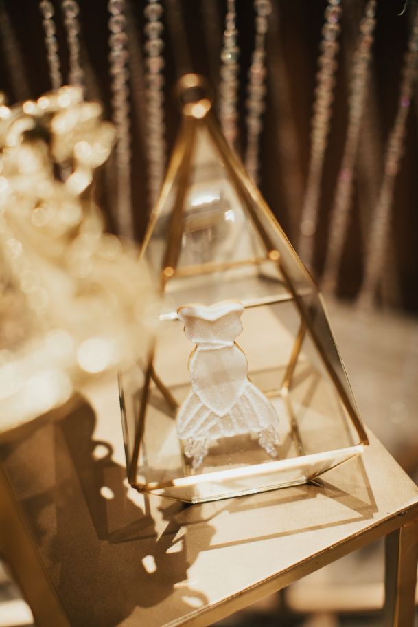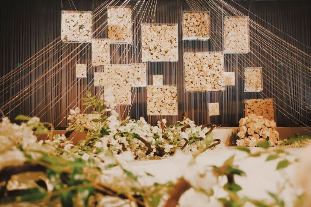 因为我觉得新郎就像最外层的水晶盒,为新娘遮风遮雨,而盒中的花朵就像新娘一样的气质干净。这就是这场婚礼的整体设计。