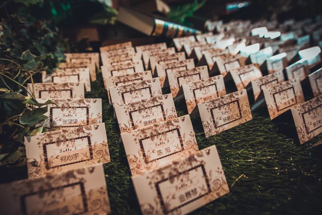 宋佳就通过一些婚礼小细节的设计,像座位卡啊、手写体的宾客伴手礼卡片之类,突出新人对大家的情感。还会在婚礼环节设计上注重增加宾客的参与和与新人的互动。