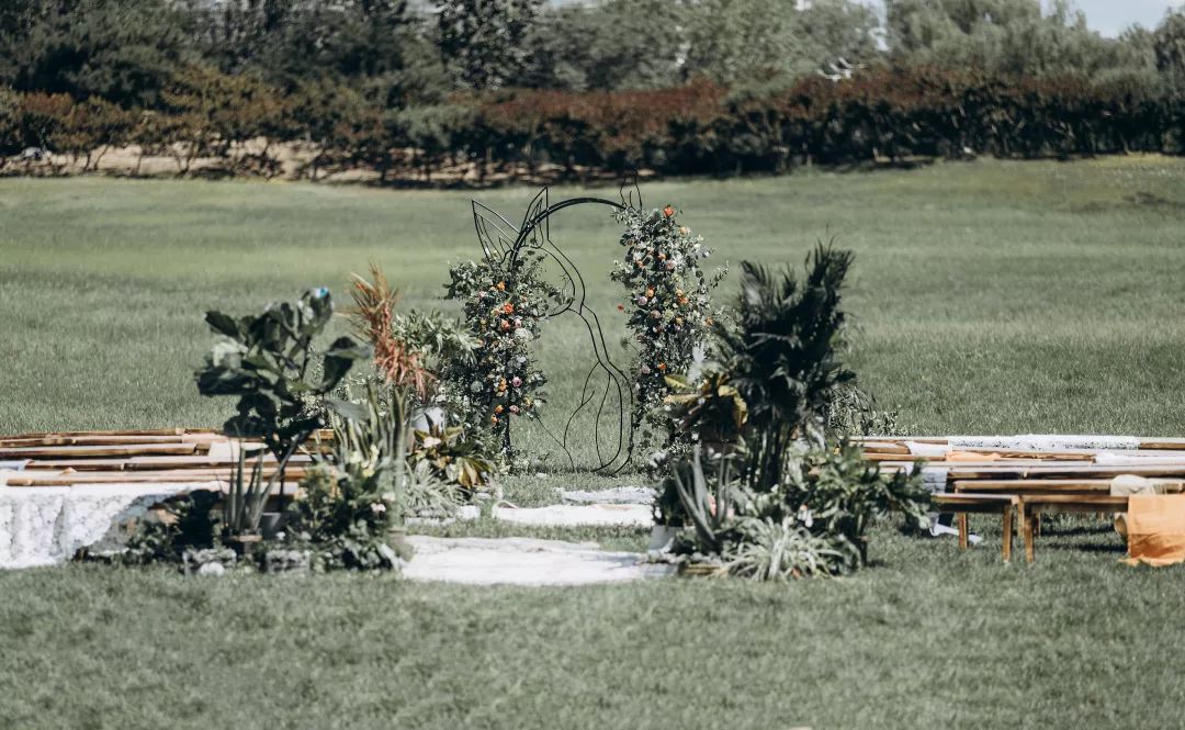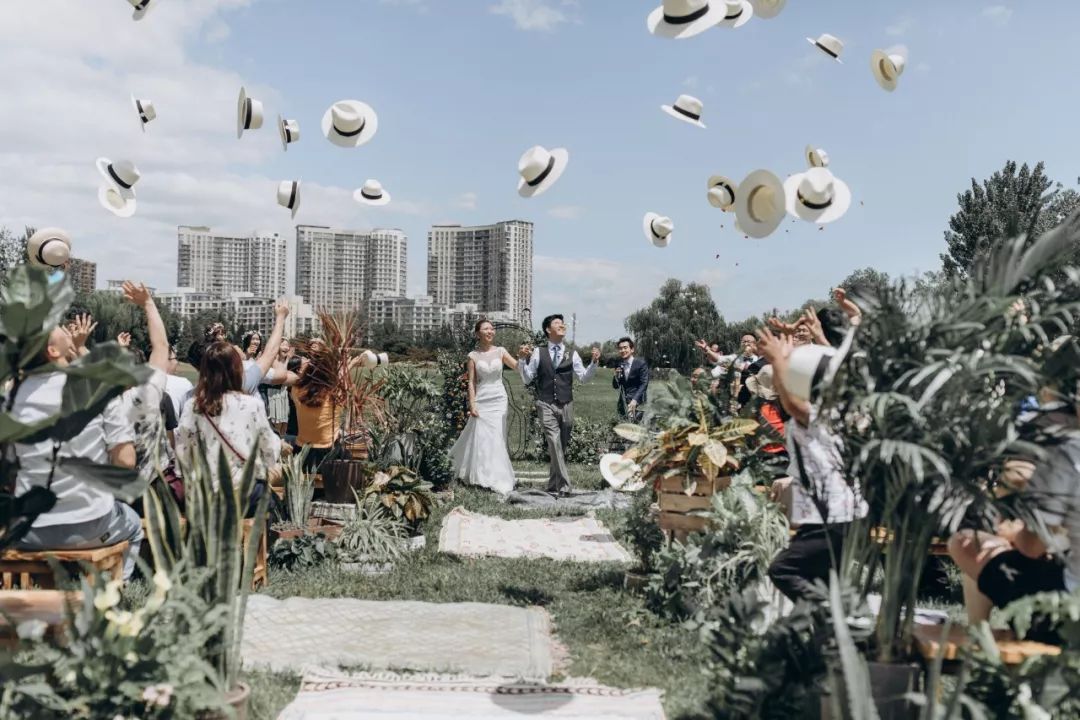 而且他们很环保,婚礼仪式的通道装饰都是可以带回家的绿植,还可以作为礼物送给来宾。