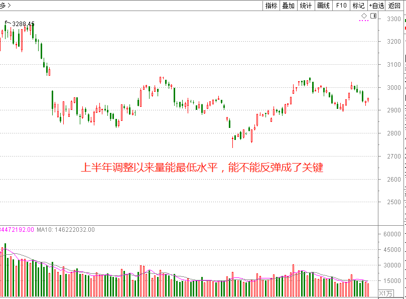 从量能来看,这个位置的连续缩量,向下直接杀已经没有太大机会,但没有量的反弹也是起不来,所以指数这段时间大概率会在2900-2980这个区间震荡,操作上这两天有个小的反弹,但空间非常有限,可以利用这个小反弹机会检验手中股票强弱,顺便可以高抛低吸降低手中股票持股成本。