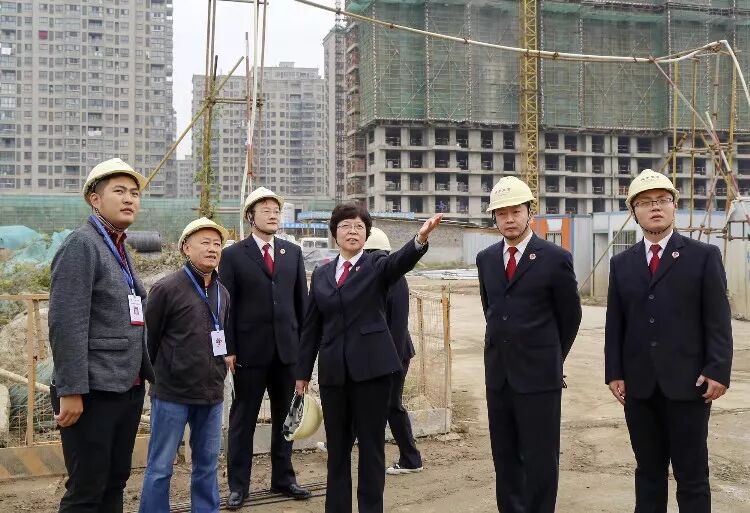 沈淬检察长一行深入建设工地一线,仔细了解在建楼盘的设计、建设、销售等情况,实地查看了工地防尘设施使用情况、运输车辆清洗情况,向公司宣传了检察服务保护职能,征求了企业对检察机关的意见建议。