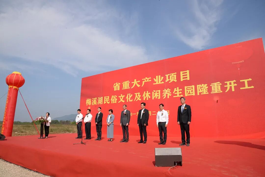 今日上午,七星峰下,梅溪湖畔,总投资25亿元,核心区占地面积2000多亩,其中建设用地315亩的省重大产业项目梅溪湖民俗文化及休闲养生园在新林乡大坪头村开工建设。