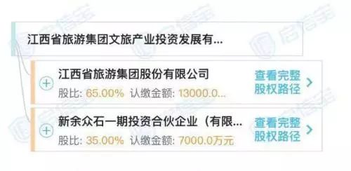 值得留意的是,这个项目的另一投资方实力不可小觑。据启信宝,江西省旅游集团文旅产业投资发展有限公司由江西省旅游集团股份有限公司持股65%,后者具有江西省属国企背景。