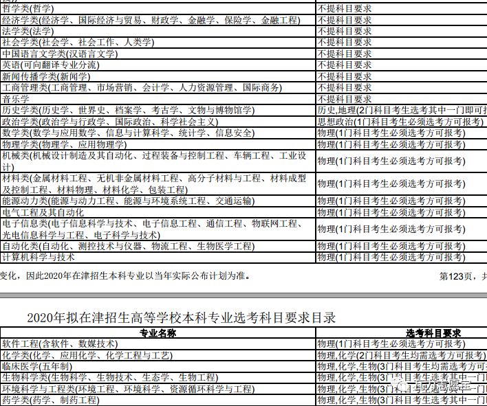 6.天津2018录取位次,理科专业分数,2020专业科目要求