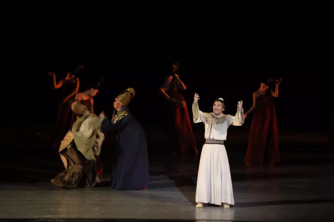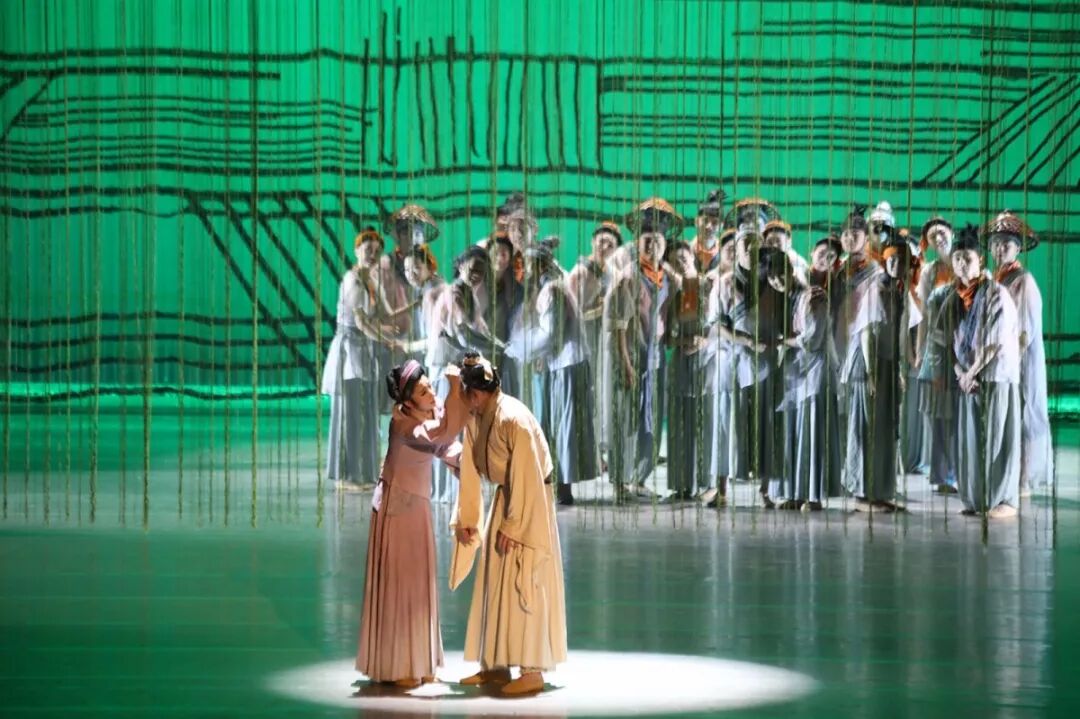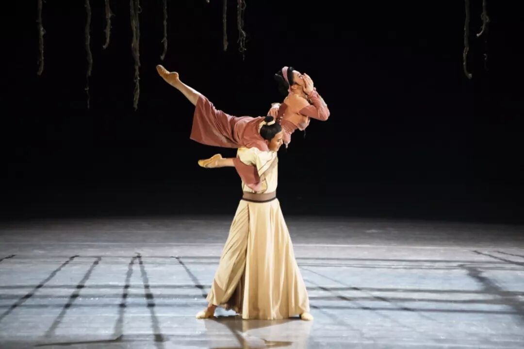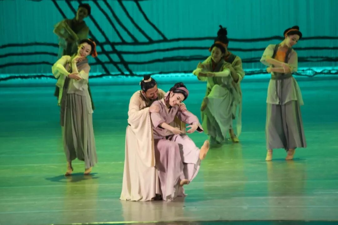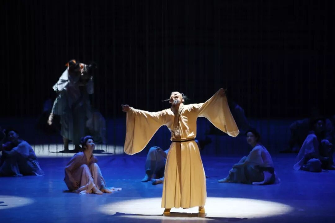 演出中,由孪生兄弟饰演的两个“杜甫”“隔空对话”,嬉笑怒骂间,情节层层递进,人物形象跃然舞台之上。“杜甫”与“妻”的一抱一挽间、“肢体对话”中,“小家”与“大家”交织更迭。“兵车行”“三吏”“三别”“春夜喜雨”等一个个块状舞段串联起一个个故事情节,深刻诠释了杜甫诗史及其产生的社会文化根源,将“诗圣”忧国忧民、心怀天下的家国情怀演绎得淋漓尽致。而极致的舞美、考究的服装造型,加上国际审美视野和现代科技手段的运用,让该剧“诗情画意兼具”,在中西合璧中达到当代舞剧美学新高度,有力弘扬了中国古诗这一中华优秀传统文化。