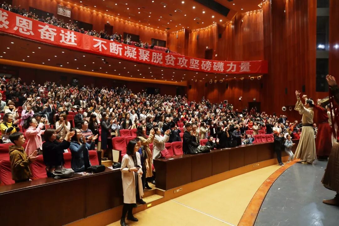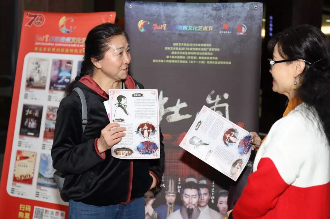 台上演员倾情演绎,台下观众群情激昂,谢幕两次还迟迟不愿离场。“在贵阳能看到这么高大上的舞剧实在太难得了!我已经关注很久了,以前外省的演出没买到票,今天终于如愿以偿,真的很荣幸!”来自凯里学院的雷老师带着女儿,与同事们一道前来观剧,她说,青少年儿童就应该多看看这类优秀剧目,接受传统文化的熏陶。贵阳市民王先生则是在朋友推荐下走进剧场,他说,“读杜诗,看《杜甫》,可以说是一次心灵的旅行。”中国电信贵州分公司的10多位大姐之前通过抖音观看过《丽人行》,这次特地组团前来观看,她们表示不虚此行,“在剧场观看的效果更加震撼!”