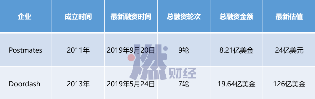 除去已上市的GrubHub和Uber Eats,燃财经整理了另外两家的融资数据。