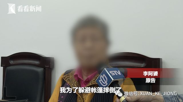 原告李阿婆:“那个帐篷(被风)吹起来了 我为了躲避帐篷摔倒了,摔倒了睡在地上就爬不起来了。”