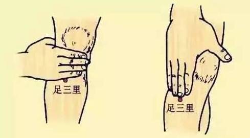 因为这是足三里穴的所在,它距髌骨外侧下方凹陷四指宽,生气胃胀时,用大拇指或中指按压足三里穴5~10分钟,每分钟15~20次,以感到酸胀、发热为宜。