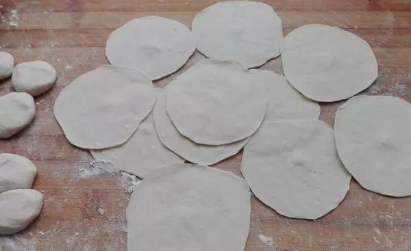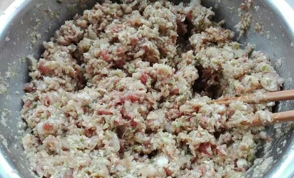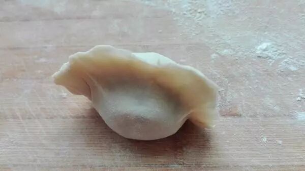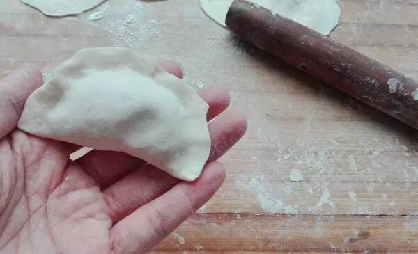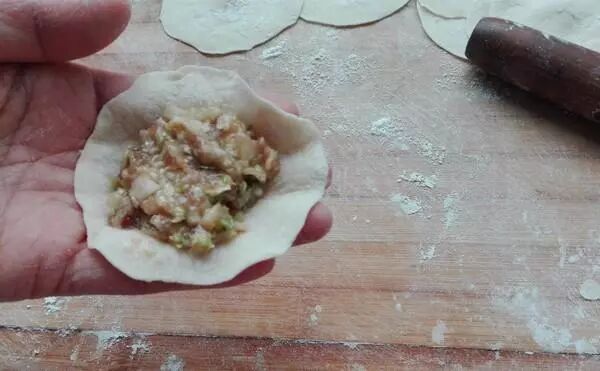 6. 把饺子皮放进馅里