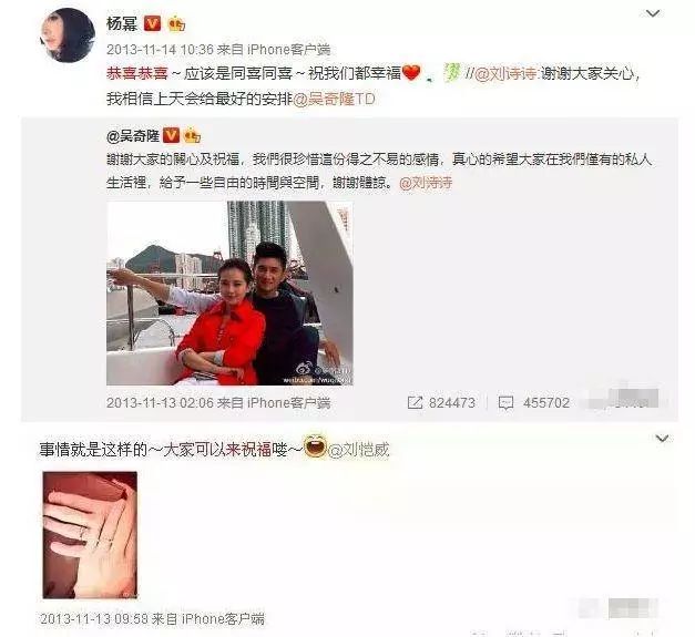 后来吴奇隆刘诗诗前脚公布交往的消息,杨幂后脚立马公布了自己的婚讯,引来吃瓜群众一阵猜测:为了抢头条?