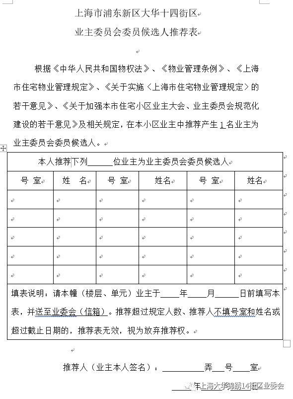 方法1:可于指定时间至业委会办公室申领纸质推荐表,(10月26上午9:30—11:30日业委会接待报名)现场填写并报名: