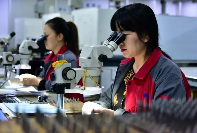 10月18日,国家高新技术企业江西杰浩金工具公司,工人们正在检查精密精密切削刀具。摄影/章轲