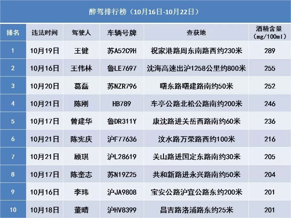 为进一步推进交通大整治,减少各类交通违法,预防各类交通事故,上海市公安局交通警察总队严整严治酒后驾驶、超速驾驶等严重交通违法,现就近期查获醉驾、超速名单进行公开曝光,以警醒交通参与者。