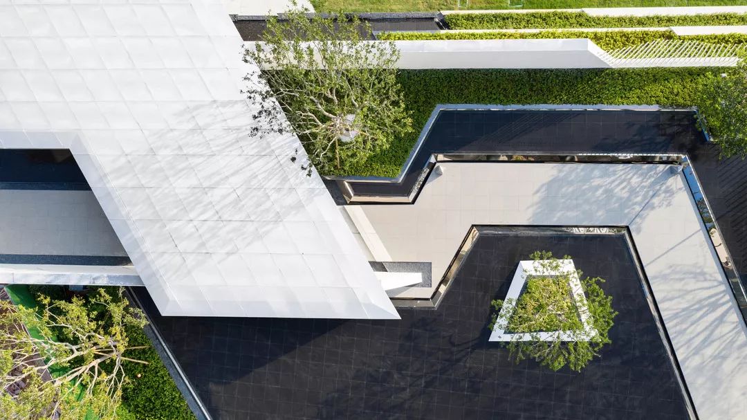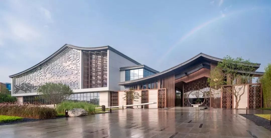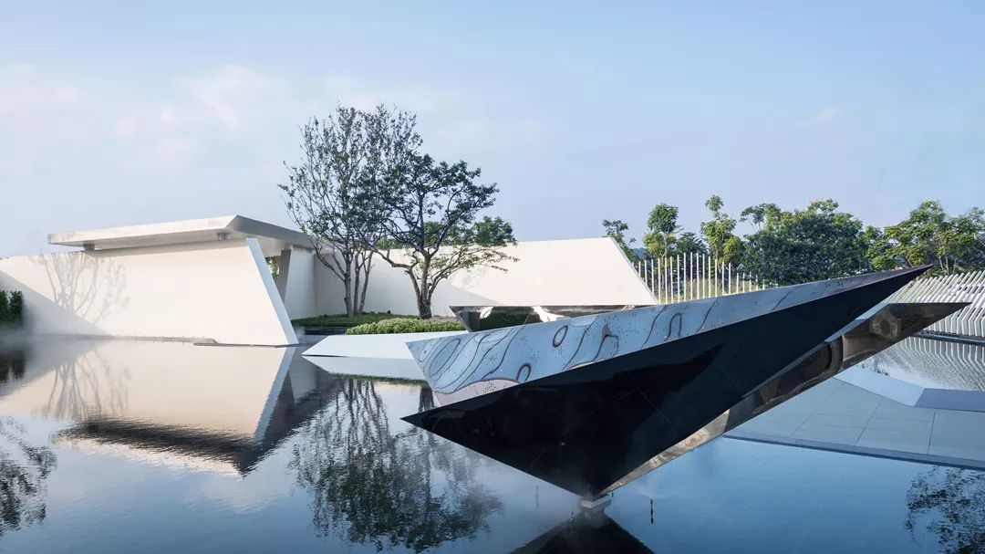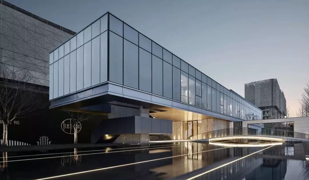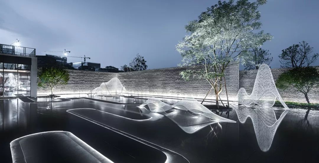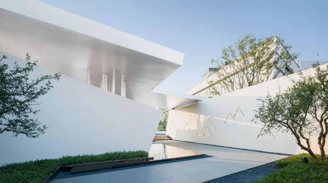 山水形象,现代书院。界面宛如书院的院墙环抱,仿佛是将一切与文化无关的气息都隔绝在外。内部庭院错落,或大开大合,或内敛幽静,流水般的动线,开放自如,生动活跃。