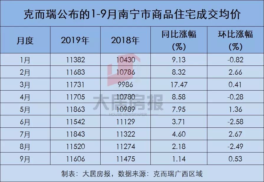 我们先来看克而瑞公布的今年1-9月商品住宅的房价,从下表可以看得出,2019年南宁的商品住宅成交均价,同比2018年的数据,都是持续上涨的,没有一个月出现过回落。只是环比数据涨跌不太稳定,但幅度不大。今年5月,住房和城乡建设部对包括南宁在内的四个房价指数累计涨幅较大的城市进行了预警提示。“这和购房需求积极释放,尤其是部分投资投机需求进入等有关。预计后续房地产管控会有进一步升级的可能。” 专家表示。那么问题来了,金九银十促销那么多,南宁的房价到底降了吗?小编说句戳心的话:南宁房价没有降!但是横盘时代已经来临,横盘是炒房的末日,却是刚需的天堂。横盘两年,差额为零,满二的增值税就可以省掉。横盘就是停车,司机已经仁至义尽,能不能上车全看自己。横盘是国家给予我们最好的礼物,不可能为了少数无房户,就把房价打回原形,所以一定要懂得感恩!所以之前小编说过,那些促销只是为了吸引眼球,对南宁的整体房价,起不到任何影响作用。指望南宁房价下跌的你,可能要失望了。
