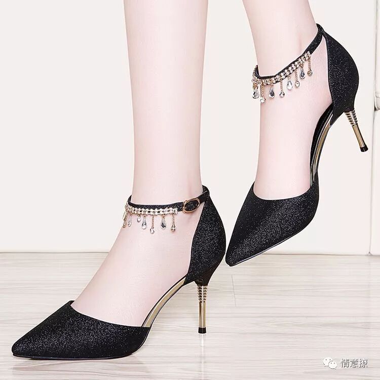 经典的黑色调,百搭不过时,细细的凉高跟,性感十足,透着迷人的女人味气息。