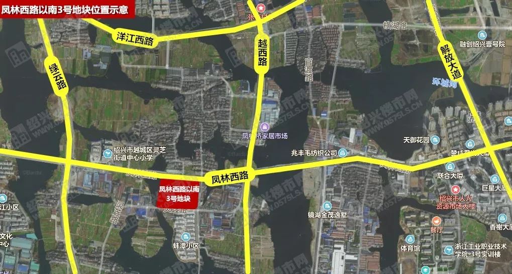 凤林西路以南3号地块北邻凤林西路,三横三纵路网,交通便利。地块周边,商业、医疗、教育、休闲配套醇熟,均能保障居民的日常生活,与周边大型商场梦享城距离不足一千米,同时地块以北,离规划建设中的绍兴市新人民医院约900米。地块以北,毗邻灵芝街道中心小学,学区优势明显。