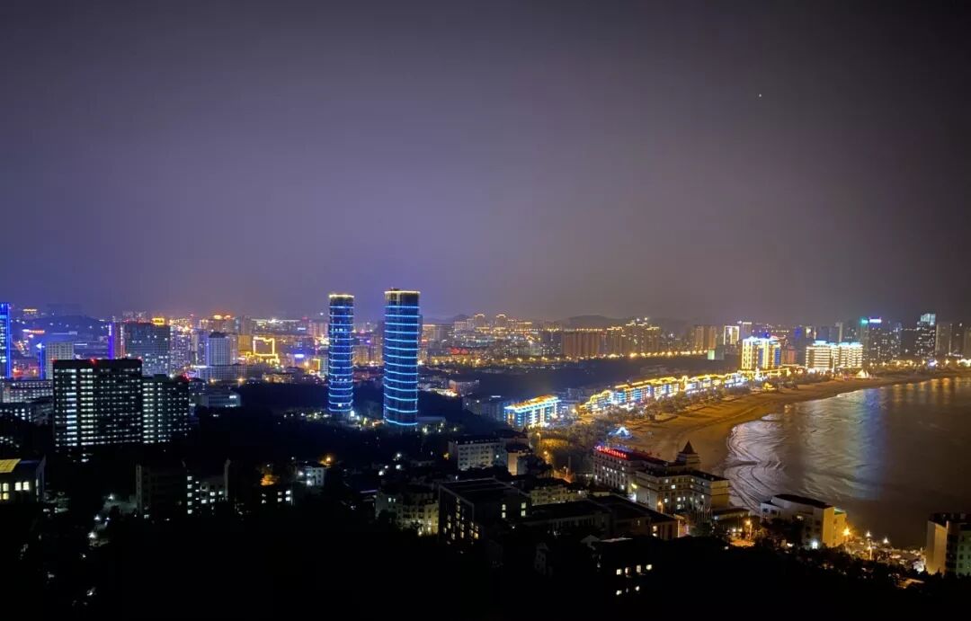 首先,在观景平台上,可以一览山东大学校区和海湾夜景。