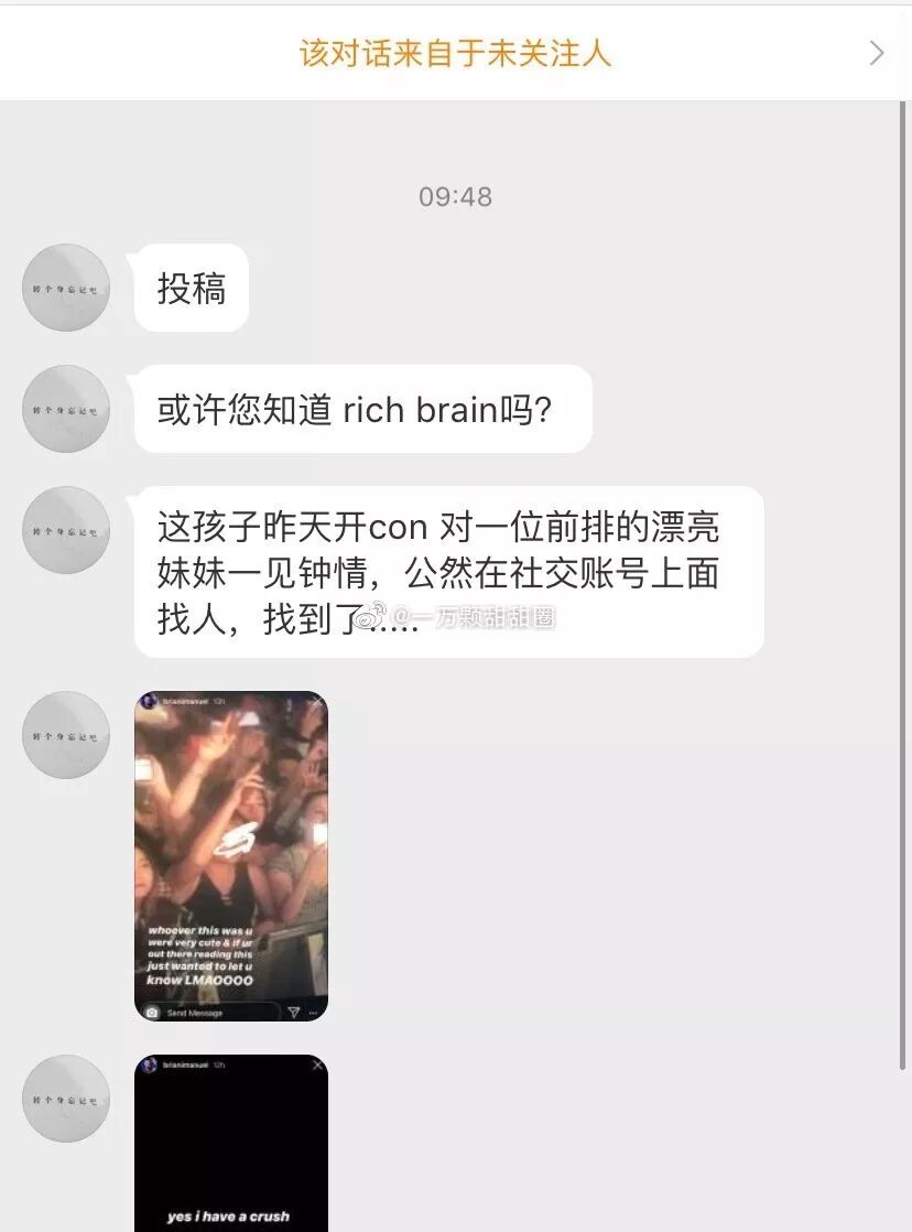 而现在,Rich Brain表示又在为演唱会上一见钟情的女粉丝写歌了,我酸了。