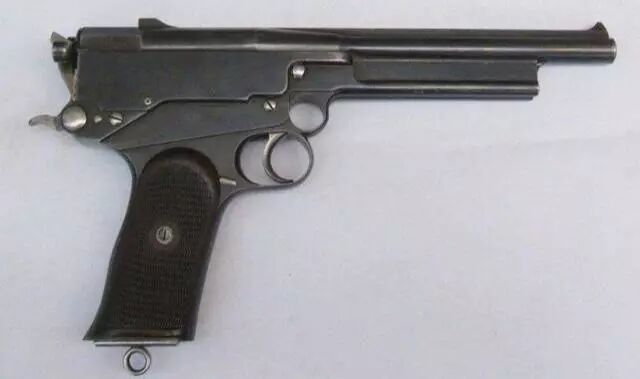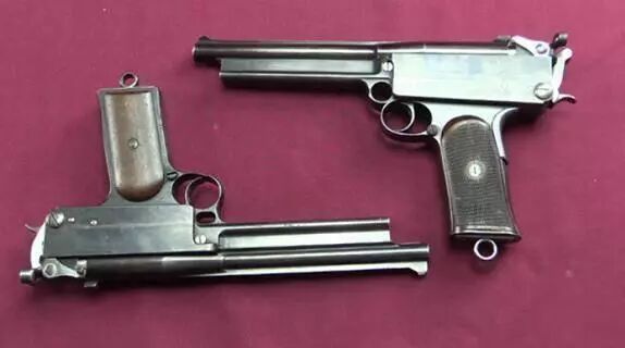 Mars手枪,1900年由Hugh Gabbet-Fairfax设计的军用手枪,枪管长度达到了11.25英寸,使用不低于28.6mm瓶形弹壳的大威力手枪弹,可以说曾经是世界上威力最大的手枪。