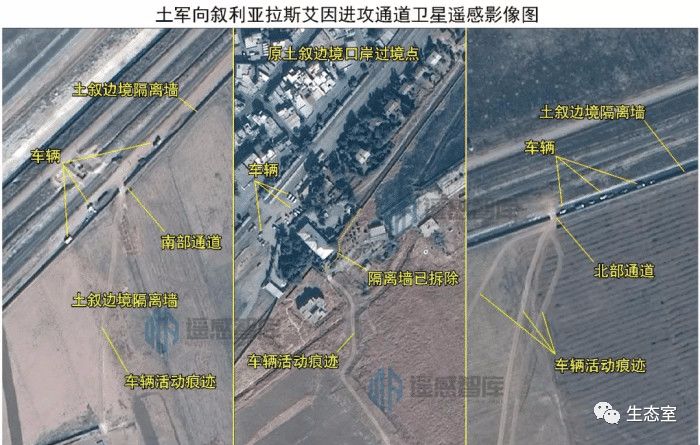 10月9日,土耳其宣布对叙利亚采取军事行动,并于10月12日占领叙利亚北部重要城市拉塞因,一天后占领关键城镇塔尔艾卜耶德。中国卫星可以看到土耳其军队的调动和部署。