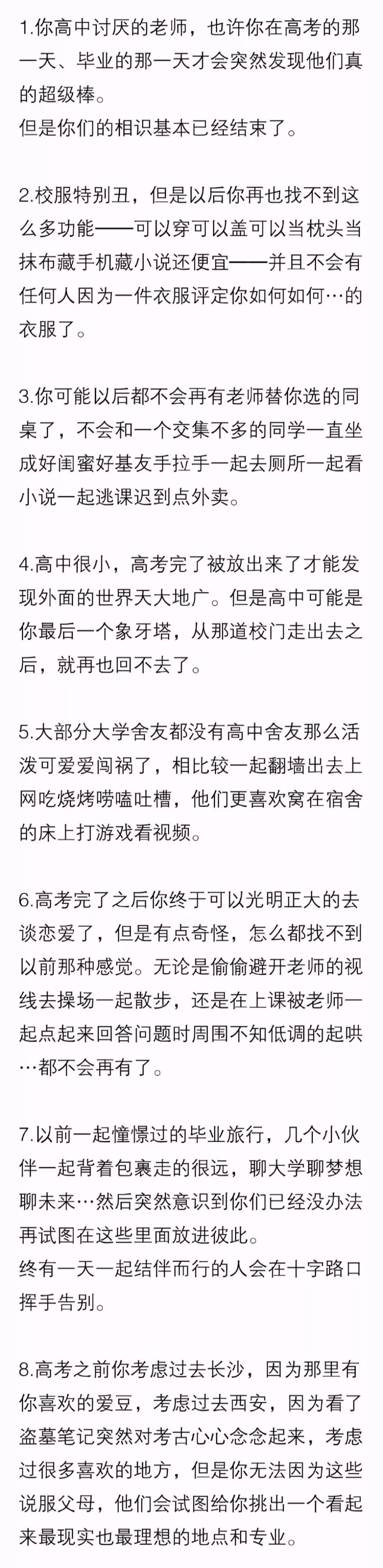 13. 高考以后我们才懂,高中生涯真的很难忘。