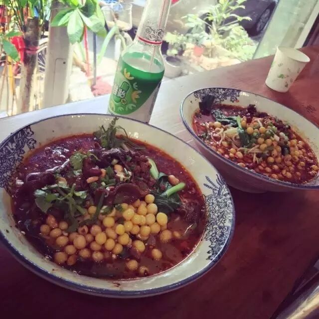 挑起来咬上一口,劲道爽滑的面条夹杂着椒油、麻油和杂酱里油脂的香气在口中迸发,鲜咸麻辣融汇交织,虽然都是重口味,但出奇滴并没有哪一味夺了其他食材的味道,反而特别融洽,口感非常美妙!个人最爱里面煮的软烂绵密的豌豆,和杂酱简直是绝配!品一口杂酱顿感八珍玉食,夹一许豌豆着实回味无穷。