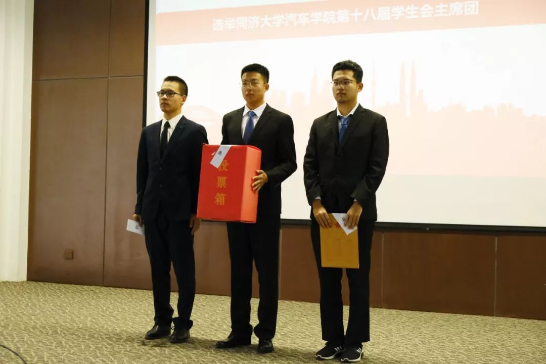 同济大学汽车学院团委书记王京晶老师、同济大学学生会副主席、嘉定校区执行委员会执行主席韩佳良、同济大学汽车学院学生兼职团委副书记、汽车学院第17届学生会主席聂毓辰出席本次会议。同济大学学生会副主席韩佳良代表校学生会对本次大会工作进行监督。大会由聂靖轩主持。