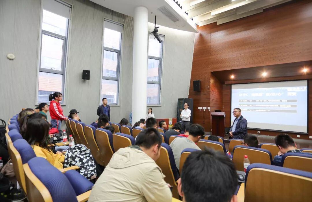 现场座无虚席,学生认真听讲