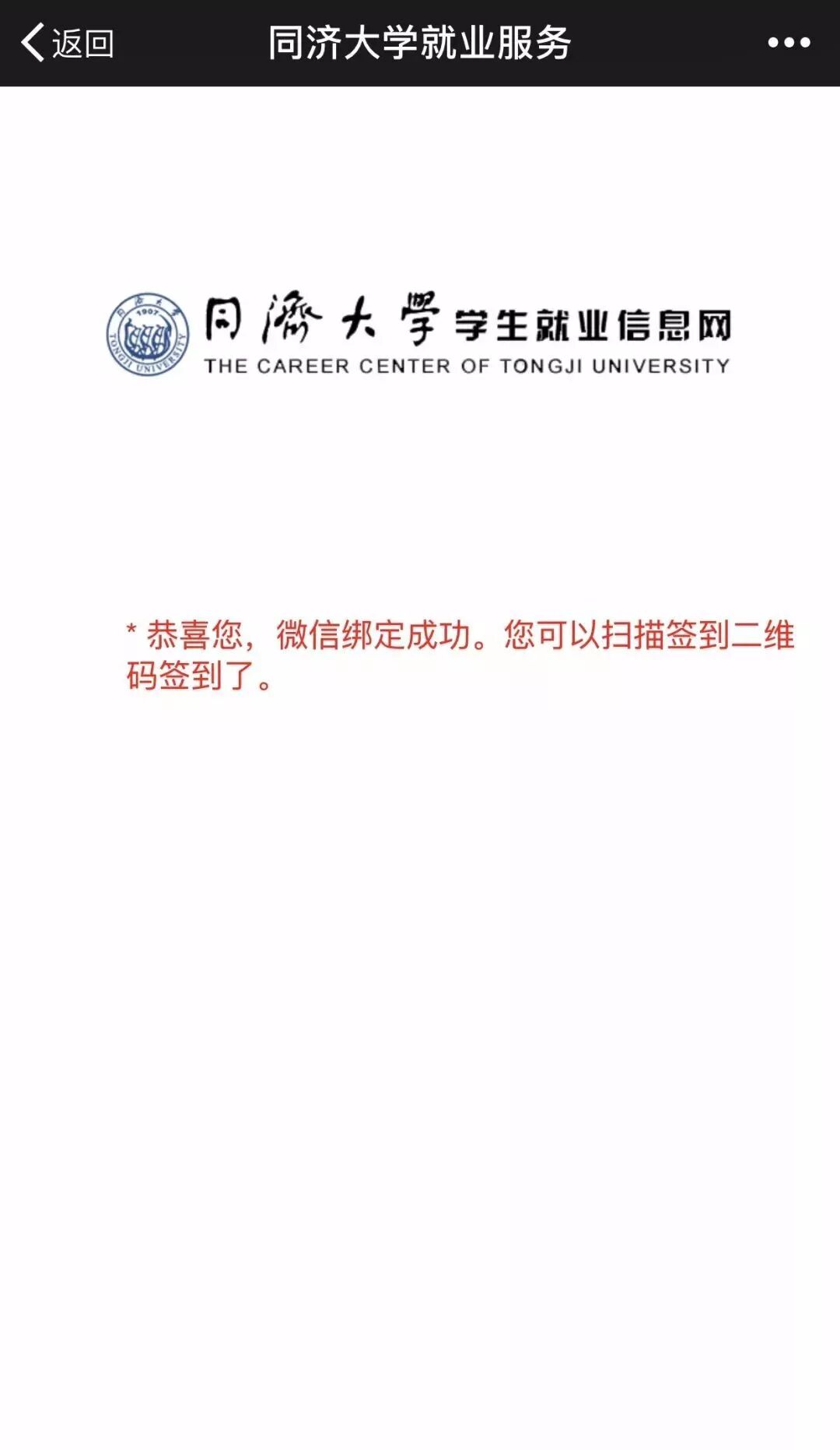 使用学号和密码登录同济大学学生就业信息网,再用微信扫描屏幕上的二维码也可完成绑定操作哦!