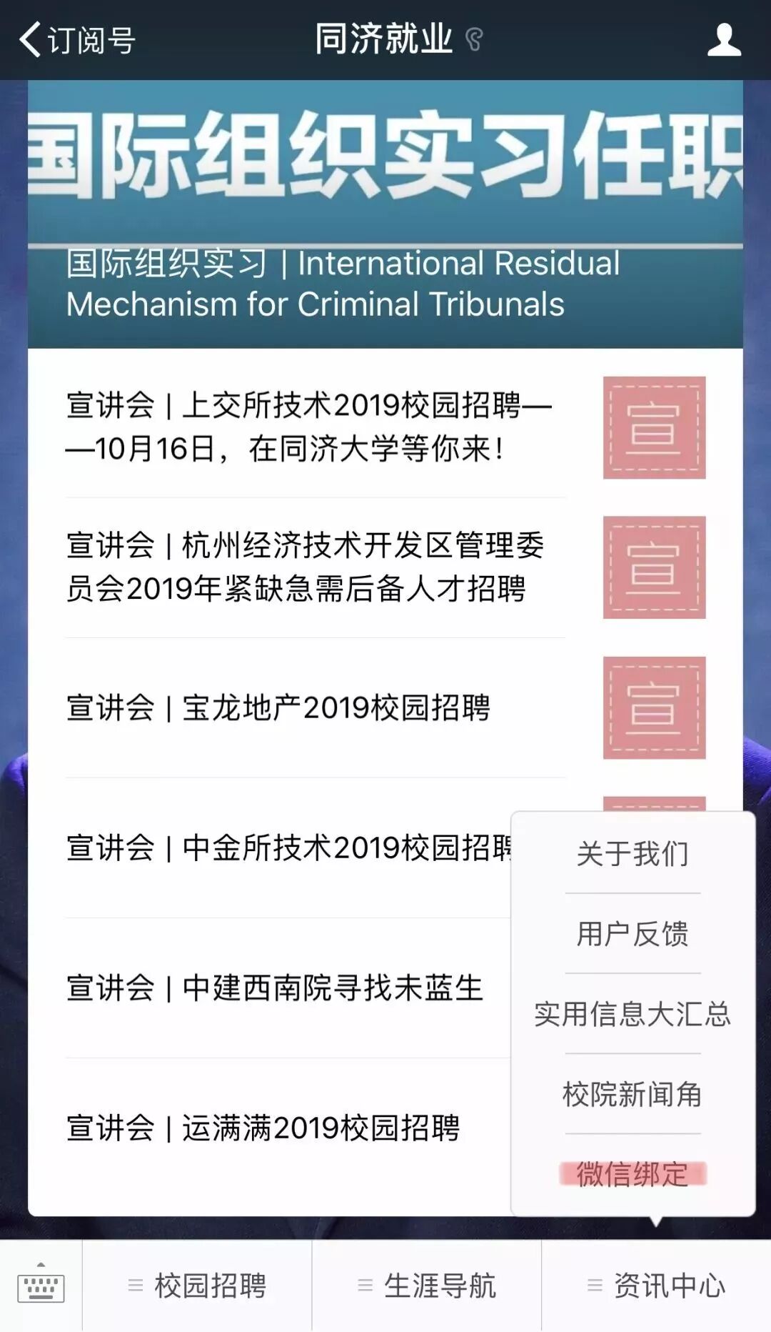 在“同济就业”微信公众号后台回复关键词“微信解绑”
