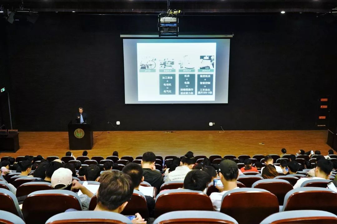 “想要创业,如果没有创新,没有技术的支撑,是无法成功的。”徐博铭首先上台,为同学们带来“创新驱动发展战略背景下的数字化设计与制造”主题学术讲座。他指出,在智能化时代,数字化设计与制造就是一项创新技能,掌握了技术,产品研发质量也会同步上升,创业自然水到渠成。结合飞机制造、高速印刷、汽车智能驾驶及韩国“世越”号沉船打捞等真实事例,再配以机器人试验短片,徐博铭将大量涉及机械专业的知识浓缩并融入其中,引发了现场同学对未来中国制造业智能化光明未来的无限向往。“智能制造工程是《中国制造2025》的主攻方向,而数字化设计与制造是其中的关键技术。”他表示,数字化对生活的改变将是巨大的,将这样的创新技术应用于创业,定会造就有蓬勃生命力和发展力的优秀企业。